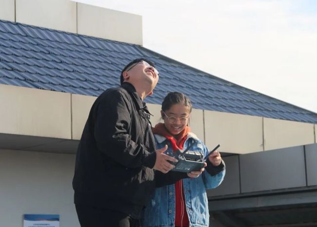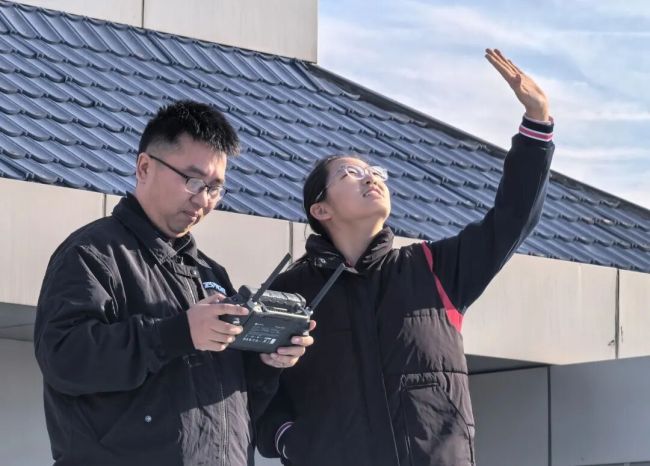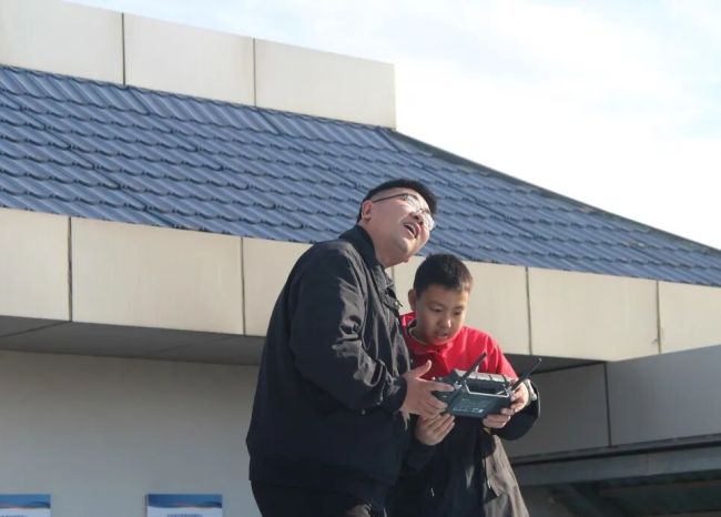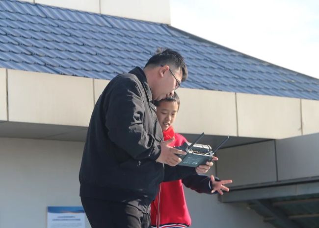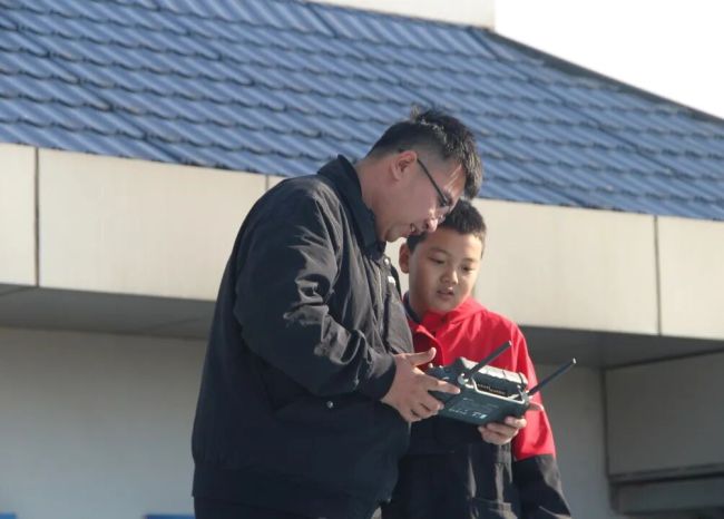 最令同学们兴奋的当属无人机体验环节。航测工程师详细讲解了现代无人机的发展历程、主要构成及应用场景,随后现场演示无人机起飞、悬停与降落,精准的操控引来阵阵惊叹。在工程师的耐心指导下,同学们轮流尝试操作,一双双小手紧握操控器,看着无人机缓缓升空、平稳飞行,脸上满是自豪与喜悦,测绘梦想的种子也在这一刻悄然种下。