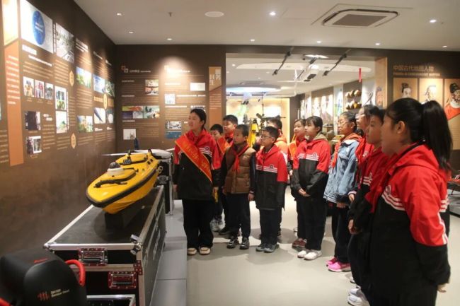 同学们也化身小小志愿者讲解员,穿梭在展厅中,用稚嫩却流利的语言分享着测绘仪器的历史故事,成为展馆里一道鲜活的风景线。测绘历史科普长廊里,一张张珍贵照片、一段段详实文字,让同学们直观了解到测绘成果如何广泛应用于城市规划、交通管理、环境保护与灾害预警等领域,深刻体会到“测绘无小事,一点不能错”的严谨。当牛总工讲到地图绘制时,严肃强调“规范使用地图,一点儿都不能错”,让同学们懂得强化国家版图意识、维护国家领土主权完整是每个公民的责任与义务。