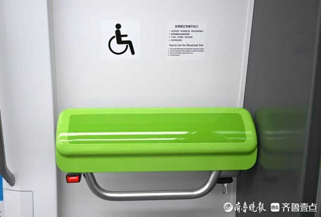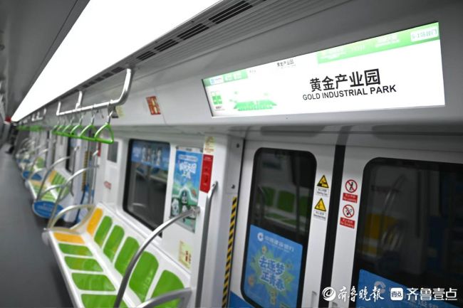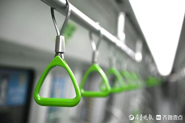 12月26日下午,记者提前探营济南地铁4号线,4号线车辆已经来回空运,静候开通运营。记者看到,车厢内座椅主打色为绿色,爱心专座为黄色,扶手、指示牌等都是绿色,尽显青春活力。同时车厢内还配有同色系的充电口,同色系轮椅固定带,十分温馨。