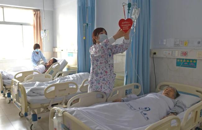 淄博市市立医院“无陪护”病房的护士与护工共同照料患者。