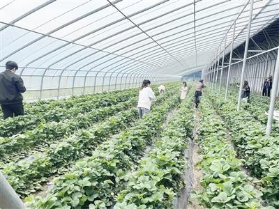 莱西市日庄镇半亩花田家庭农场内,游客正在采摘。