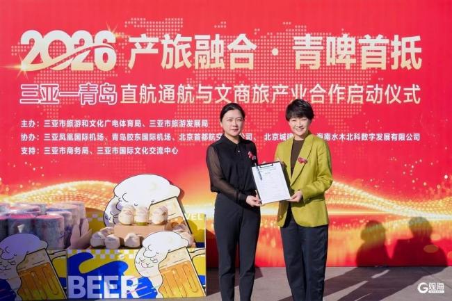 2月4日上午,“2026产旅融合・青啤首抵——三亚-青岛直航通航与文商旅产业合作启动仪式”在三亚凤凰国际机场举行。此次仪式的举办,标志着青岛与三亚正式打通“特色物资直航+文商旅产业联动”双向通道,为两地跨区域协同发展注入强劲新动能。