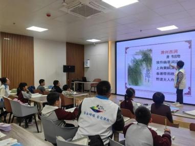 活动现场,志愿者老师以声为媒、以诗为桥,带领城市书房的小读者们沉浸式体验诗词歌赋的魅力。不同于传统诵读形式,活动创新采用诵、读、说、议、唱、演等多样化形式,打破了诗词传播的时空壁垒,引导孩子们在朗朗书声中走进唐诗宋词的世界,在趣味互动中感受文字的韵律之美、意境之深,切实提升了诗词诵读的趣味性和体验感。