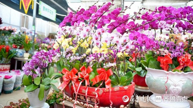 “搬到市场里来就有十多年了!”作为枯桃村人,曲女士在花卉行业有着二十多年的从业史,她经营的蒙爱花卉虽然面积不大,却格外受人青睐。“刚从她家拿了盆‘雪域’蝴蝶兰,5株花了145元,造型也好看。”作为年宵花新手玩家,00后的小殷在市场中徘徊了一上午,最终满意而归。