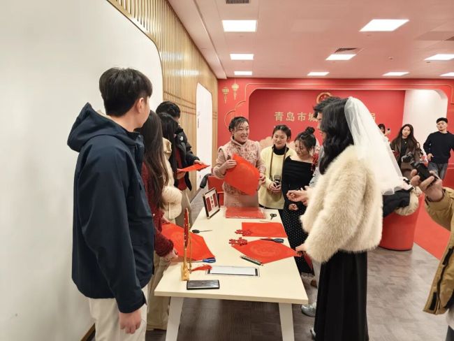 新人们两两协作、默契配合,认真勾勒、细心修剪,在沉浸式非遗体验中感悟婚姻的责任与相守的真谛。新人王先生与李女士捧着亲手完成的剪纸作品笑意盈盈:“比起铺张的仪式,这样兼具文化味与仪式感的活动更有意义,既近距离感受了非遗魅力,也读懂了用心经营、相伴一生的婚姻之道。”