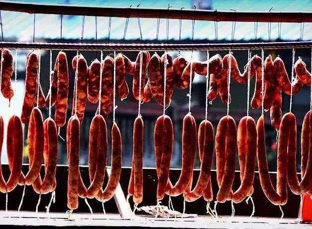 阳台上挂几串香肠,是淄博人过年的仪式感。肥瘦相间的猪肉灌好后晾干,油润发亮,老远就能闻到肉香。五香、麻辣、甜辣任选,切片就能上桌。