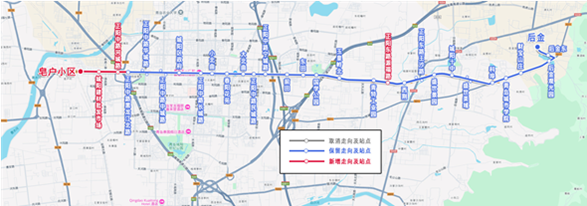 增设站:泽城路硕阳路(往泽城路硕阳路方向,新增)、学城路硕阳路(往长城路方向,新增)、达阳路学城路(往长城路方向,新增)。