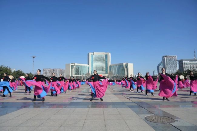 《龙马贺春》百面大鼓+舞龙气势磅礴、震天撼地,铿锵鼓点敲出鸢都儿女精气神,祥龙腾飞舞动新春好光景,一开演便点燃全场热情;《走向新辉煌》和《盛世欢歌》舞姿优美、喜气盈盈,展现出市民安居乐业、幸福美满的新生活;健身腰鼓《旋鼓迎春》热情奔放、活力四射,百面红鼓齐擂,鼓点如潮、气势如虹,尽显全民健身的火热氛围。