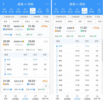 1月26日起,威海站新增至西安济南青岛聊城列车