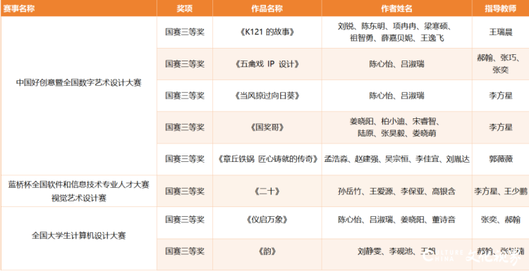山东青年政治学院文化传播学院数媒教师团队指导学生获国A学科竞赛国奖8项、省奖33项