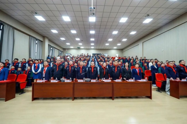 初中部德育副校长赵月宝宣读《山东师范大学怀瑾实验学校首届少工委成员名单》及《关于聘任中队辅导员的决定》,明确了少工委的职责与中队辅导员的工作任务。长清区教育和体育局少先队总辅导员郭莉为受聘的全体中队辅导员颁发聘书,对他们即将开启的少先队辅导员工作寄予厚望。紧接着,学生代表们郑重地为辅导员佩戴鲜艳的红领巾。