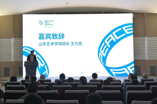 王力克在致辞中讲到,国际和平艺术中心揭牌仪式与系列学术活动在侵华日军南京大屠杀遇难同胞纪念馆举办,使命重大,意义非凡。南京艺术学院与侵华日军南京大屠杀遇难同胞纪念馆以“和平艺术”为主题,共建“国际和平艺术中心”,为和平研究从艺术教育和创作的角度做出全新的探索,这是非常有价值、有意义的一次合作。王力克指出,人们渴望和平就像渴望阳光一样,因为只有和平才能发展,只有发展才有人类的一切美好。艺术是链接人与人之间的纽带,无国界之分,就像长着翅膀的天使,飞到全世界每个角落传递着和平思想。他表示,山东艺术学院作为一所有着丰厚文化内涵和优良办学传统的高等综合性艺术院校,愿与相关院校、研究机构一起,以“和平艺术”为切入点,对“和平”主题的研究开展全新角度的探索,用艺术的方式展示高等艺术院校对“和平”的深入思考,向全世界传播中华民族热爱和平的人文思想,传达中华民族对于国家安宁、世界和平的美好愿望。