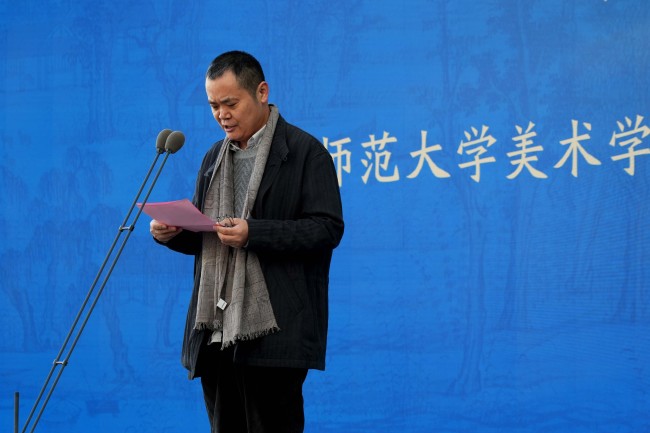 山东师范大学校长张建,济南市文化和旅游局党组书记、局长马利,本次展览学术主持、中央美术学院中国画与书法学院副院长、教授丘挺,参展艺术家代表、哈尔滨师范大学教授、博士研究生导师李岗,山东师范大学美术学院院长、教授、山东省美术家协会副主席刘明波,济南市文联主席、山东省美术家协会名誉主席张望,先后发表热情洋溢的致辞。