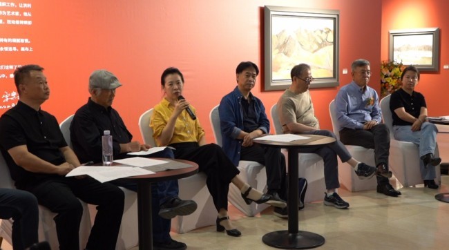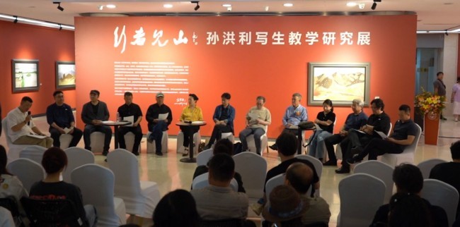 开幕式结束后,在展会现场举行了“行者·见山——孙洪利写生教学研究展”学术分享会,学术嘉宾吴云华、王易霓、刘仁杰、李晨、崔晓柏、赵斌、李林、吴晶琦、王嵬、曹明、张贯一、李卓、孙洪利分别发言,就当下写生与教学等相关问题发表各自的学术观点,并与参会艺术家、大学生进行互动交流,学术分享会由付巍巍主持。