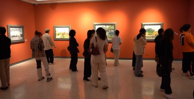 嘉宾与观众走进展厅,近距离欣赏孙洪利先生的写生作品。作品内容丰富,既表现自然山川的气韵,也凝聚了艺术家多年来在创作实践中上思考与创新,吸引了大批观众驻足欣赏。