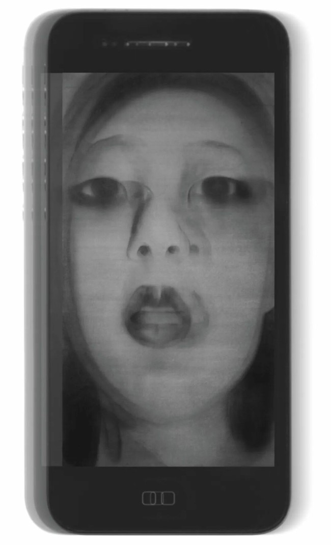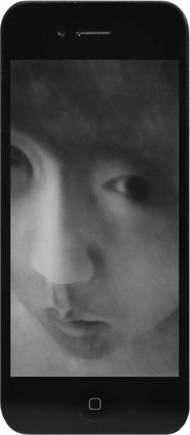 2013年底,蔡广斌开始以iPhone手机的智能镜头来定位他与当代人及景观社会的关系,以“他拍”“自拍”系列作品,开启了探索并呈现当代人私密化心理及社会典型心理的创作维度。如果说“他拍”着力表现社会典型心理投射下的人的存在状态的话,那么,“自拍”则更近于每个个体生命的精神自传,两者在隐喻层面上形成了一个完整的心理逻辑关系。在《他拍-旧去·60A》上,我们看到了什么?是蔡广斌不厌其烦地以“他拍”方式对当代人精神状态的“真实”记录,还是他以水墨影像方式对社会精神景观的心理化复制?《他拍-2017-7-10》中水墨与影像并置的女性背影前,似乎有一种窥测性欲望如影随形,究其根本,不过是包括你我在内的每个观者的欲望罢了。《自拍·iPhone·No.13》因其展出、发表次数过多,几乎成为蔡广斌影像水墨的标志性作品。这是一个活在“此刻”的女孩,然而,她无表情的表情意味着,她的“此刻”已被抽取为具有集体属性的概念,其内心亦在幻化中进入荒芜。