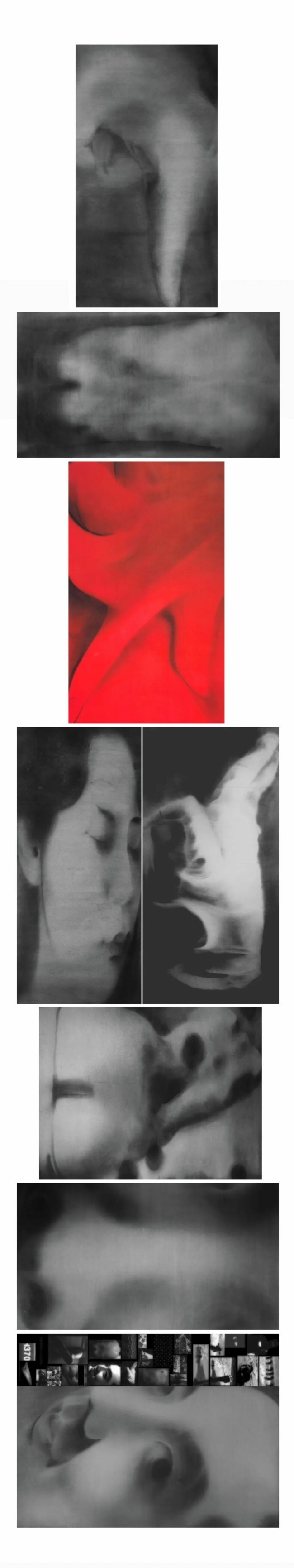 然而,从作品的性质上讲,蔡广斌几乎是无可置疑的反叛者,而且是双重的——既是当代社会的反叛者,又是中国当代艺术的反叛者。读蔡广斌的作品,犹如读一首漫长的伤感诗,而组成这首诗的节律则是艺术家随手偶拍的影像:孤寂的都市角落,不可名状的肢体、莫名的微笑、沉默的人、柔弱的背影、不断生长的景观,如此等等。在水墨晕染的无边的晦暝中,它们总是若隐若现,闪烁不定,仿佛喻示着生活的隐秘,又似乎完全失语。其低沉、哀怨的悲剧性情绪与喧嚣的时代是如此格格不入。可以说,蔡广斌的作品来自现实,又以寓言的方式疏离、拒绝了现实。不仅如此,当中国当代艺术越来越喜欢以喜剧的方式出场,在技术至上、形式主义的胜利中相庆贺,并以娱乐性讨好时代,以至于这个时代每个角落都洋溢着嬉戏声时,蔡广斌作品的沉重与忧郁是如此不合时宜。因而,稍具讽刺意味的是,蔡广斌虽置身于当代艺术领域,其性格、心灵、气质却与这个领域毫不相干。