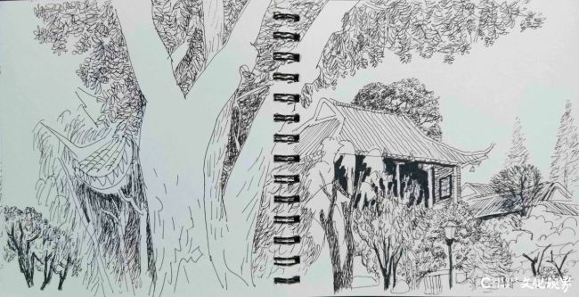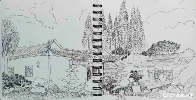 在这里的日子,时光是慢下来的。每日晨起,我便带着画板与油画棒出门——为轻便行装,特意舍弃了沉重的画箱与亚麻布画框,这看似简约的工具,反倒让我更专注于捕捉形色的变幻带给我的创作冲动。古建的飞檐在纸上勾勒出利落的线条,紫薇花的浓艳需叠上三层色彩才显鲜活,就连风中摇曳的竹影,都要趁其晃动的间隙快速落笔。每一划都蘸着山房的灵气,每幅画都藏着自然的私语。