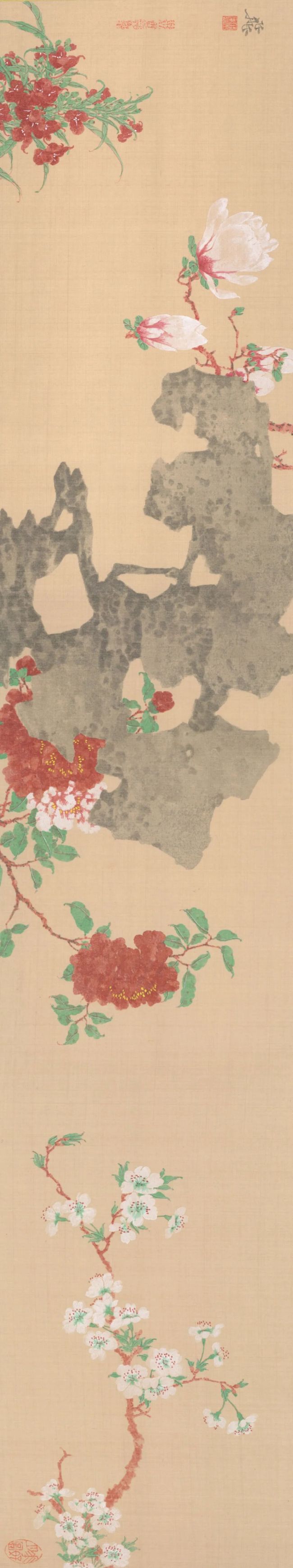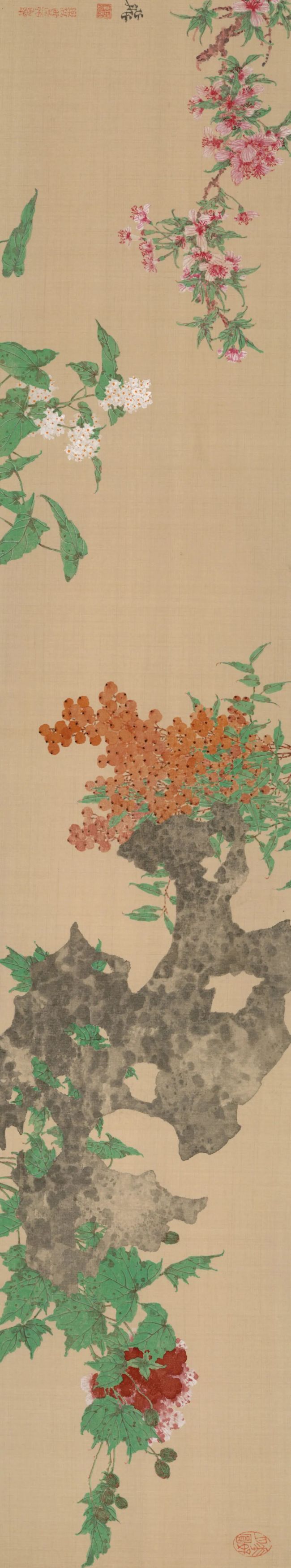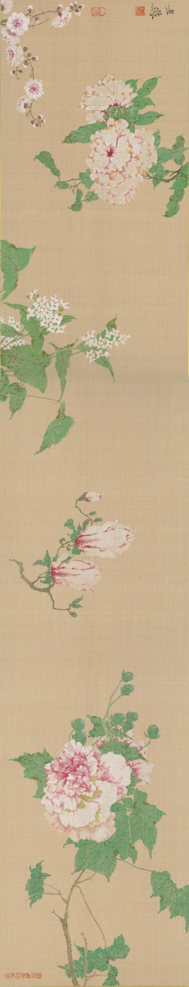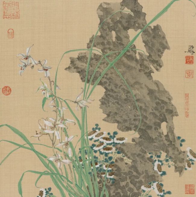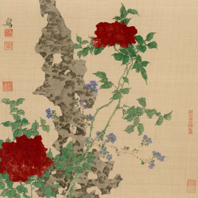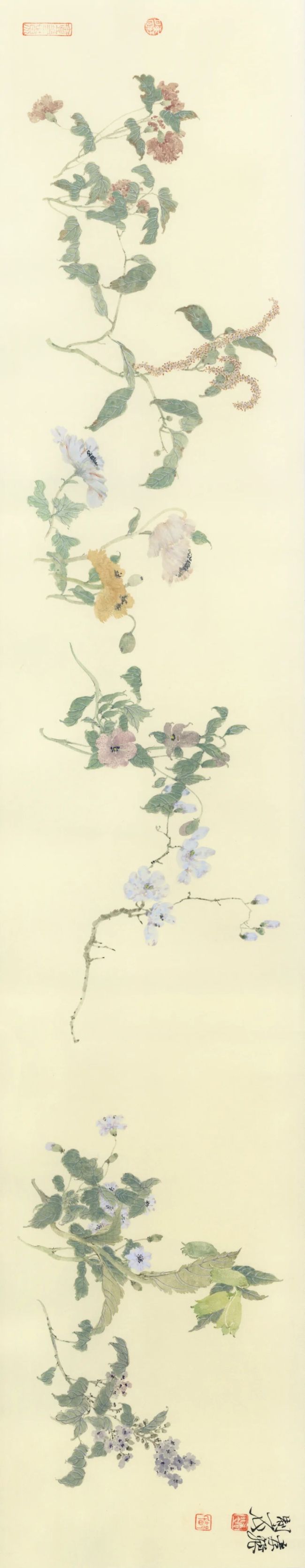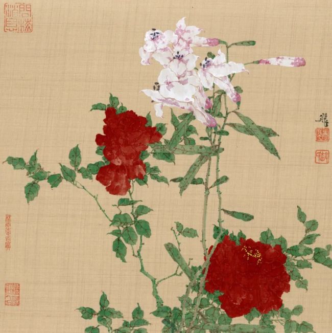 此系列从最初立意到画面布局均在早期折枝基础之上,有机组合,放笔直取,五彩布成,层染叠色,意笔之写而取工细形制。
