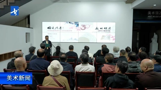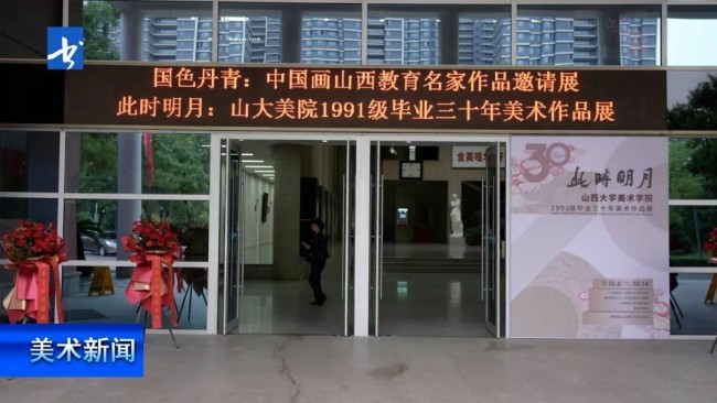 10月6日,“国色丹青:中国画山西教育名家作品邀请展”与“此时明月:山大美院1991级毕业三十年美术作品展”在山西大学美术学院联合开幕。