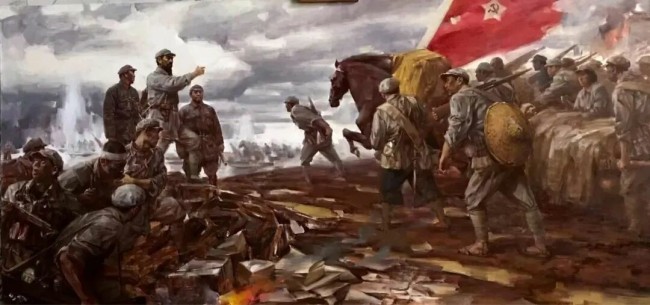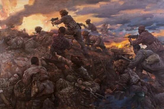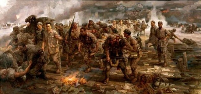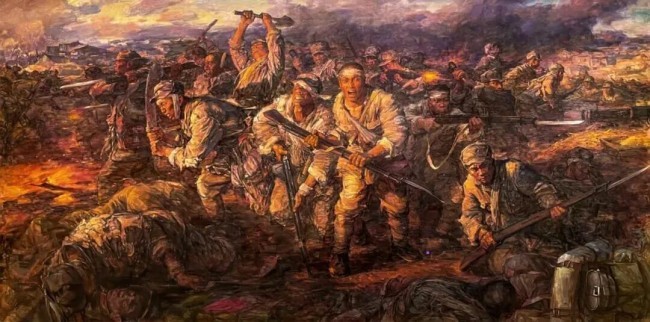 《浴血刘老庄》(与秦文清合作)布面油画2021年中国美术馆收藏