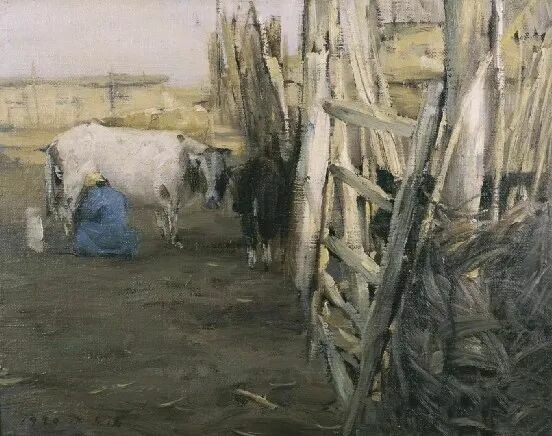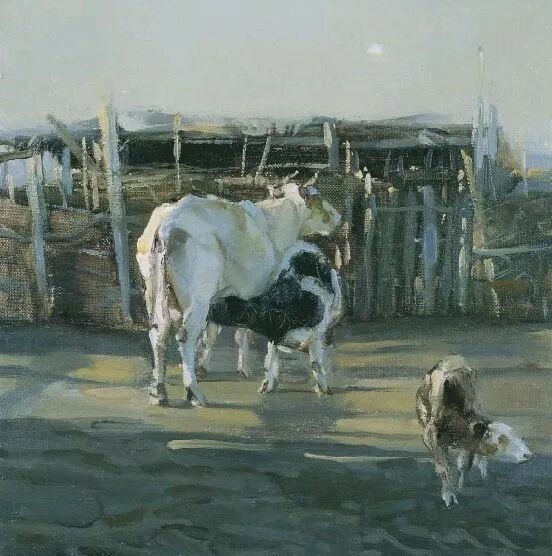 张庆涛的写生作品更是精彩绝伦。无论是人物、还是自然风景,他都极其讲究色调的和谐。那些描绘乡野、石墙、牛栏的作品,调子雅致怡人,仿佛是一首首田园诗,将人带入一个宁静而美好的世界。在他的笔下,平凡的乡野变得充满诗意,古老的石墙仿佛在诉说着岁月的故事,牛栏中的牛儿也显得格外温顺可爱。他的写生,是诗意的表达,是对自然与劳动人民的礼赞。