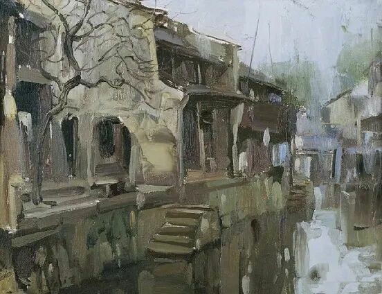 他笔下的明暗关系与造型色调,带着西方古典绘画的影子,雅致而庄重。那细腻的光影变化,仿佛是时光的刻痕,记录着历史的沧桑与变迁;同时又蕴含东方的意境与气韵,宛如一幅中国山水画,意境深远,让人回味无穷。这无疑是“中学为体,西学为用”的生动实践,将东西方艺术的精髓完美地融合在一起。