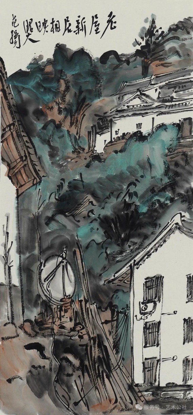 范扬《老屋新居相映照》48.8cmx22.7cm