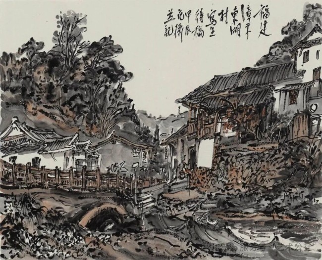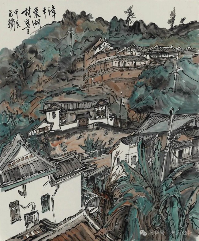 范扬《漳平东湖村写生》57.4cmx47.8cm