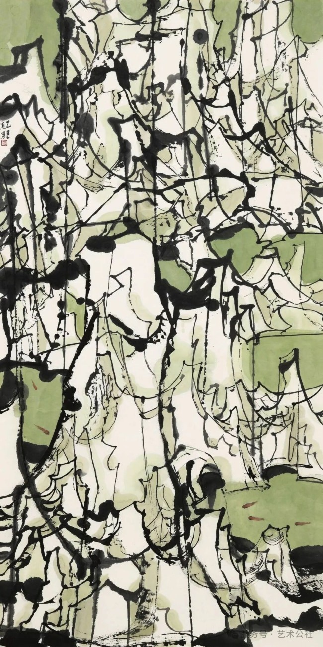 乔宜男《绿池生游鳞》 136cmx68cm 2025年