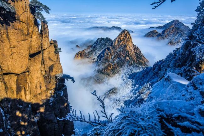 黄山,古称黟山,位于安徽省黄山市境内,地处安徽省南部、黄山市北部,地跨歙县、休宁县、黟县和黄山区、徽州区,东起黄狮岭,西至小岭脚,北始二龙桥,南达汤口镇,地跨东经118°01′至118°17′、北纬30°01′至30°18′,山境南北长约40千米,东西宽约30千米,总占地面积约1200平方千米,属亚热带季风气候;以奇松、怪石、云海、温泉、冬雪“五绝”及历史遗存、书画、文学、传说、名人“五胜”著称于世,有“天下第一奇山”“天开图画”“松海云川”之称。