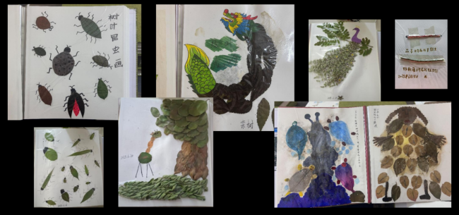 图20护林员将植物标本通过拼贴的形式,与绘画和文字综合创作而成的艺术作品。