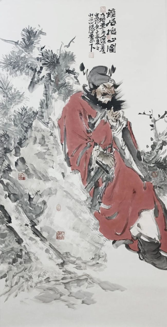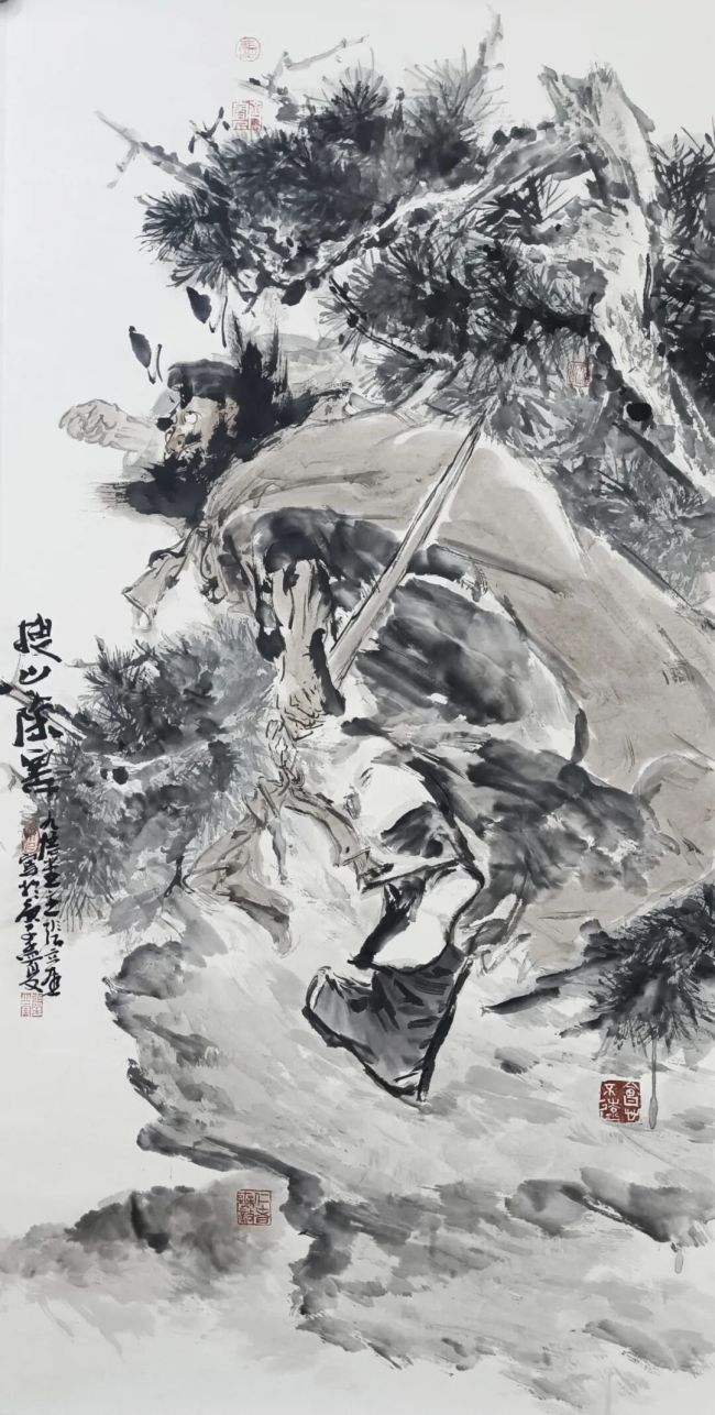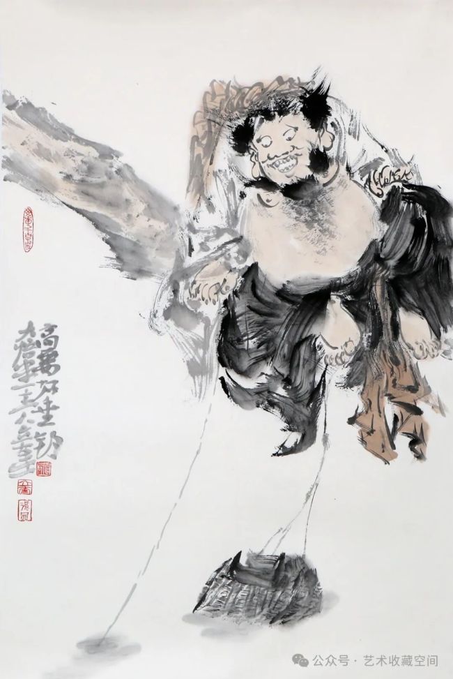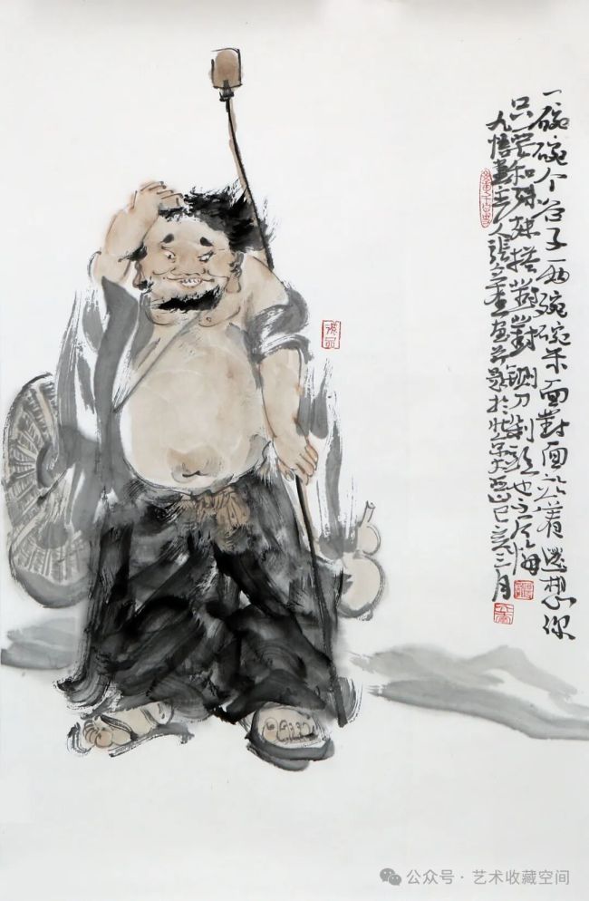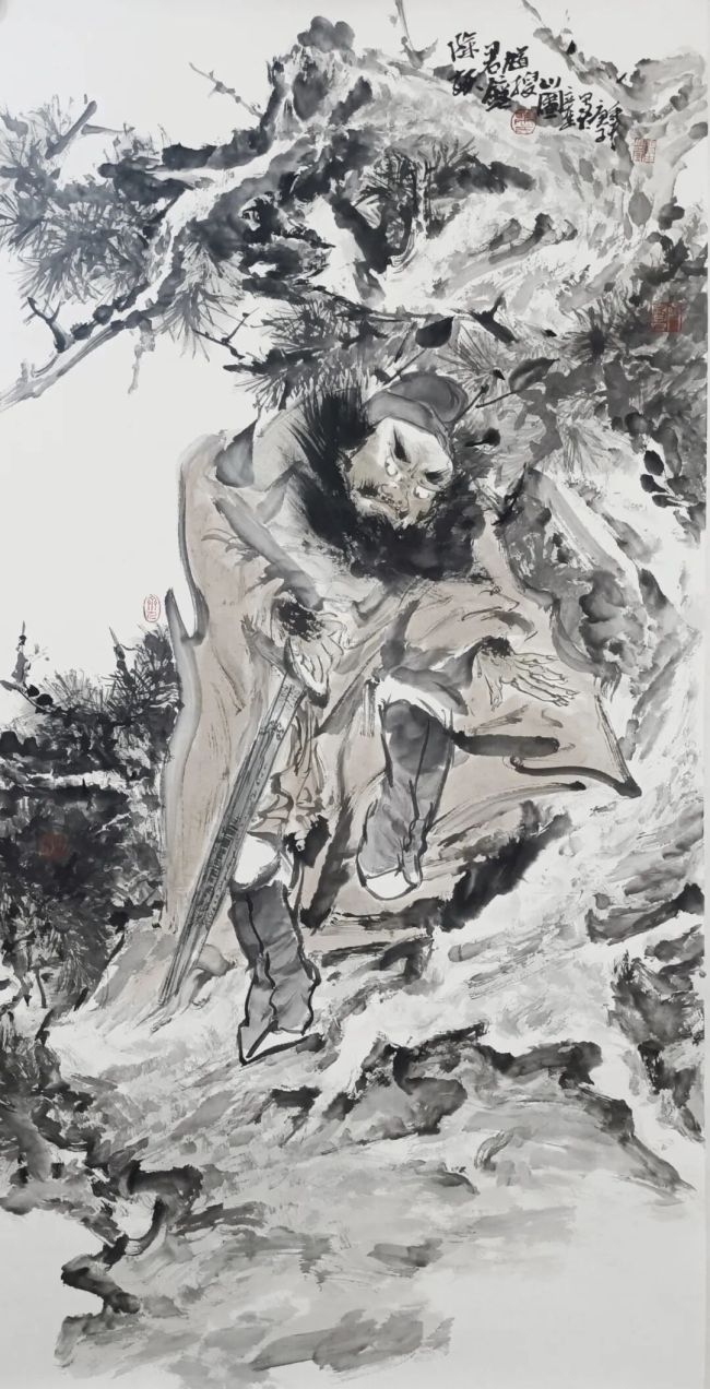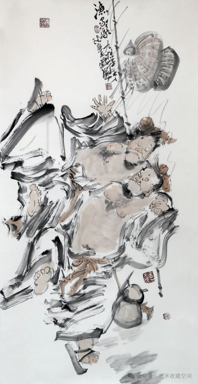 然而,真正的传承,从来不是简单的回归与摹写。张立奎先生的艺术之路,是一条“走出去”又“走回来”的循环升华之路。他带着故乡的馈赠远行,在更广阔的艺术天地中汲取养分,将现代的视觉经验与个人的生命感悟,大胆地“融今”于传统水墨的框架之中。他的作品,因而呈现出一种动人的张力:既有传统写意精神的挥洒与超逸,又充满了现代构成的形式感与力量感;他笔下的人物,既是根植于这片土地的鲜活个体,又承载着人类共通的思考与情感。