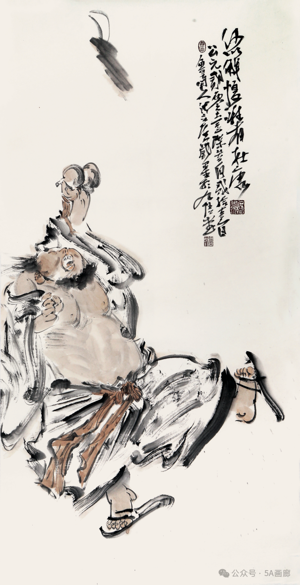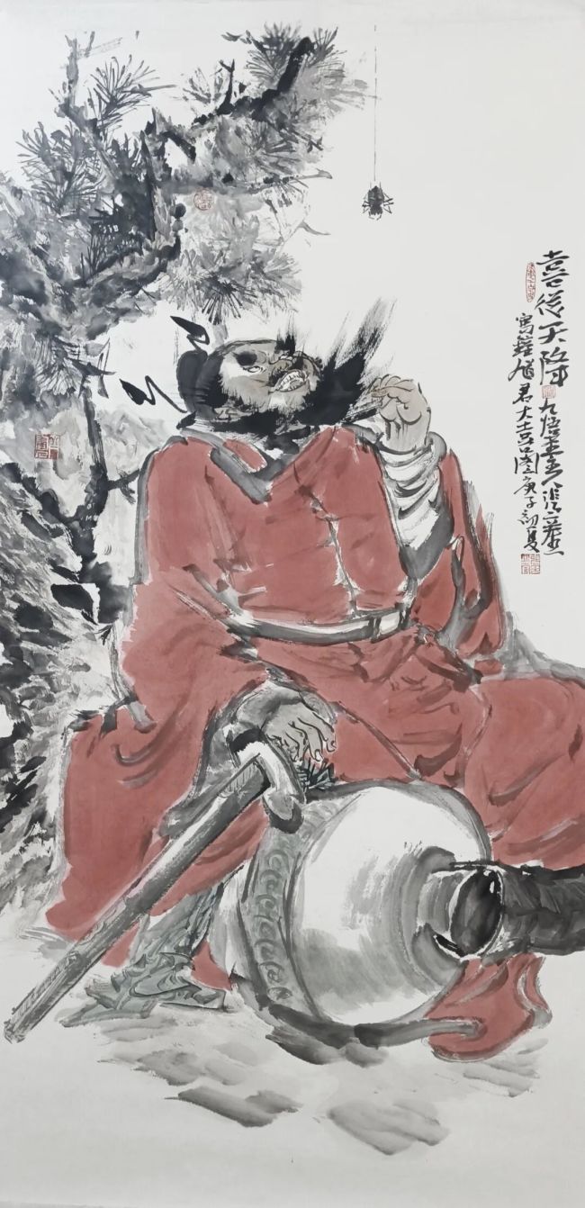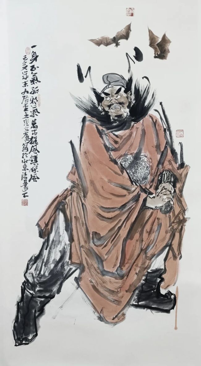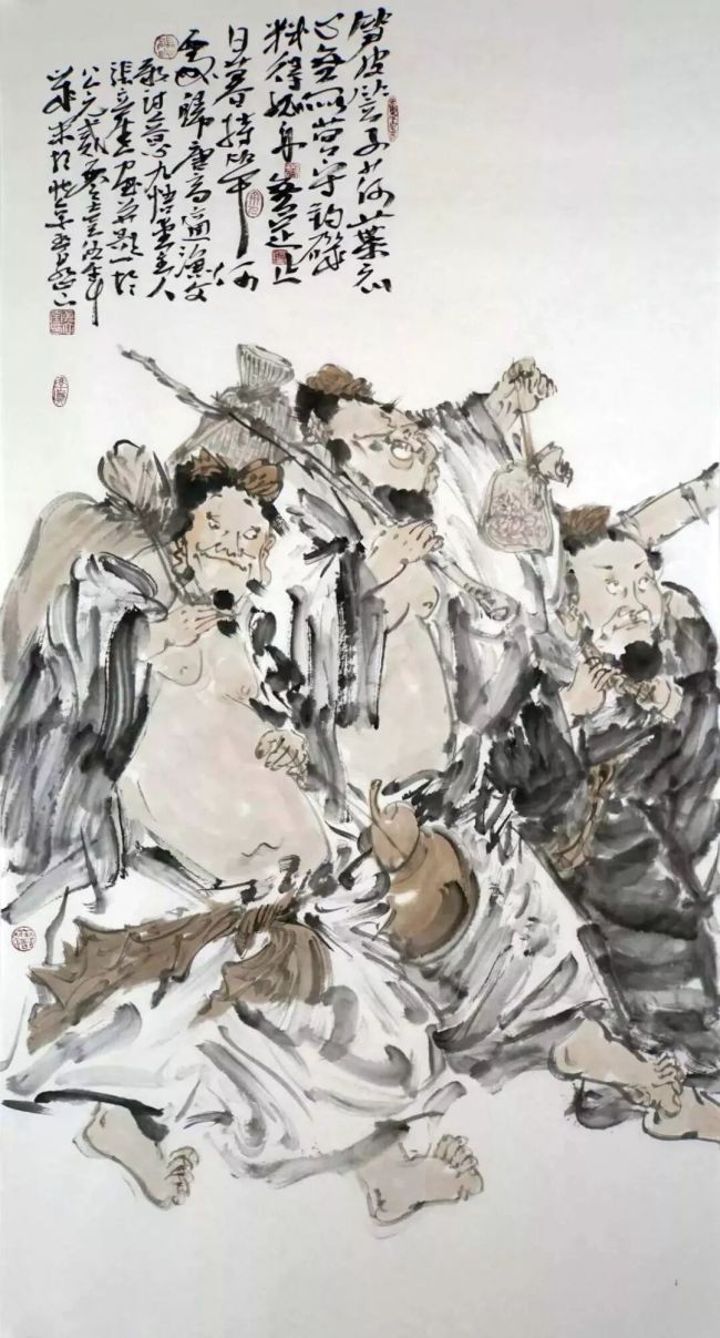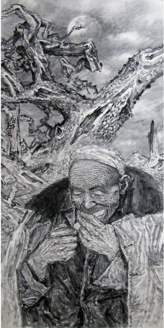 然而,真正的传承,从来不是简单的回归与摹写。张立奎先生的艺术之路,是一条“走出去”又“走回来”的循环升华之路。他带着故乡的馈赠远行,在更广阔的艺术天地中汲取养分,将现代的视觉经验与个人的生命感悟,大胆地“融今”于传统水墨的框架之中。他的作品,因而呈现出一种动人的张力:既有传统写意精神的挥洒与超逸,又充满了现代构成的形式感与力量感;他笔下的人物,既是根植于这片土地的鲜活个体,又承载着人类共通的思考与情感。
