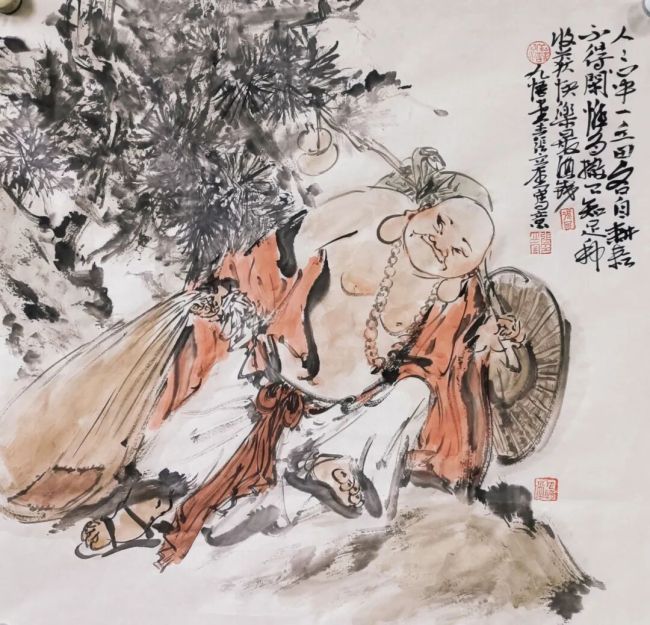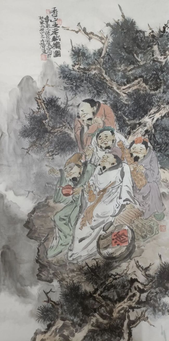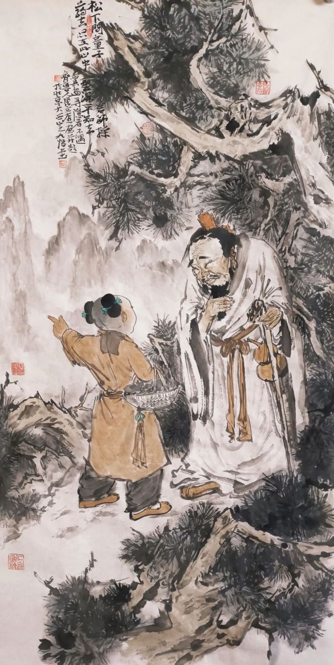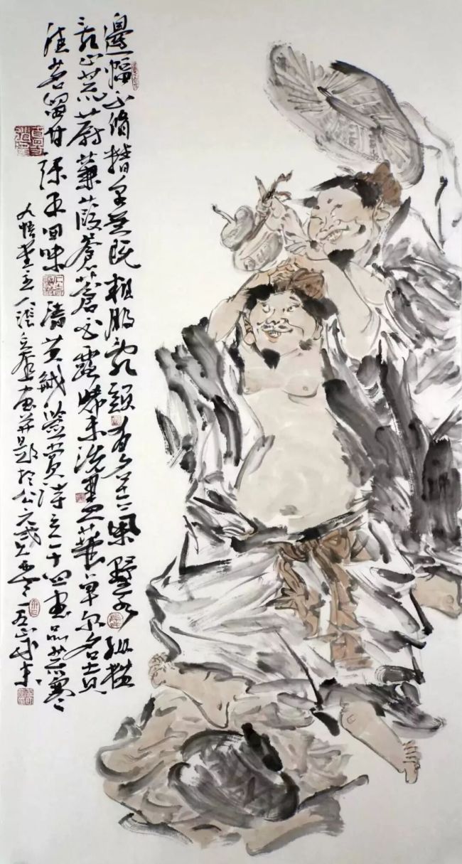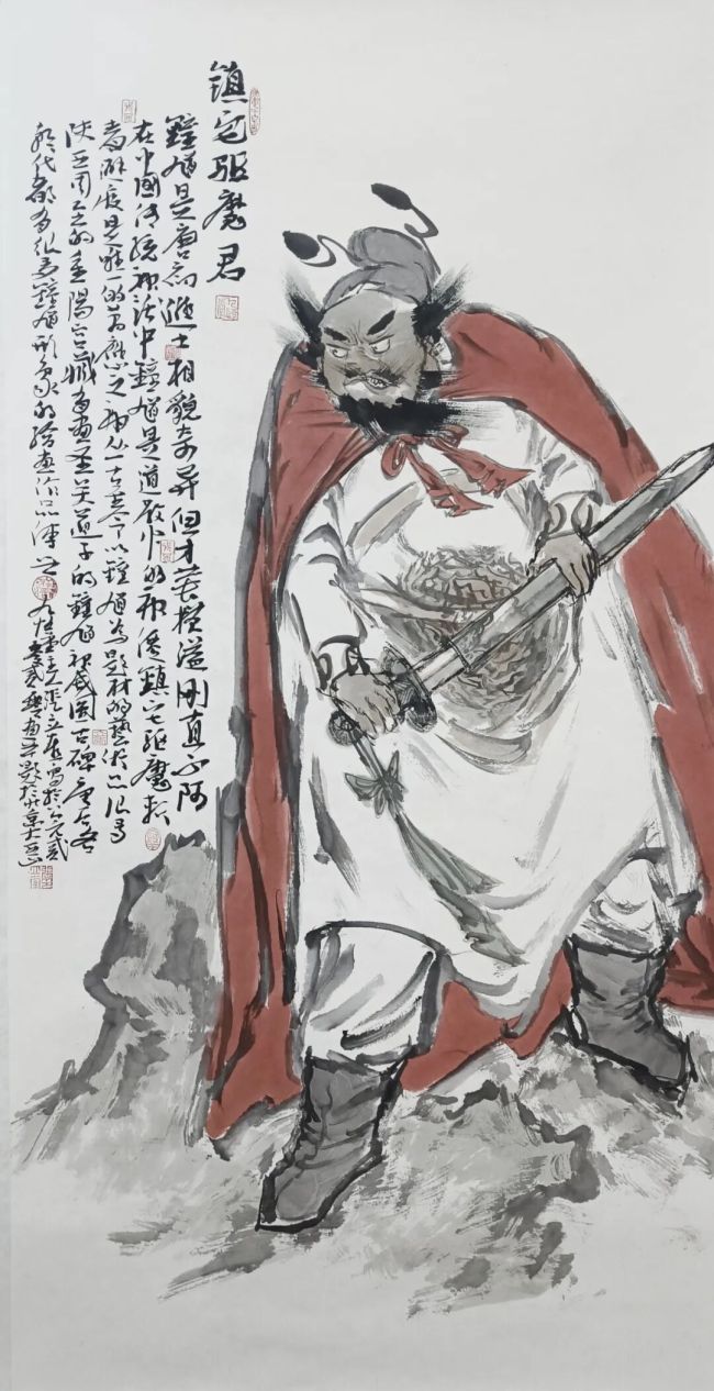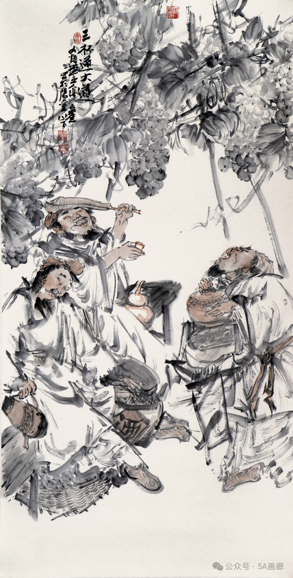 然而,真正的传承,从来不是简单的回归与摹写。张立奎先生的艺术之路,是一条“走出去”又“走回来”的循环升华之路。他带着故乡的馈赠远行,在更广阔的艺术天地中汲取养分,将现代的视觉经验与个人的生命感悟,大胆地“融今”于传统水墨的框架之中。他的作品,因而呈现出一种动人的张力:既有传统写意精神的挥洒与超逸,又充满了现代构成的形式感与力量感;他笔下的人物,既是根植于这片土地的鲜活个体,又承载着人类共通的思考与情感。