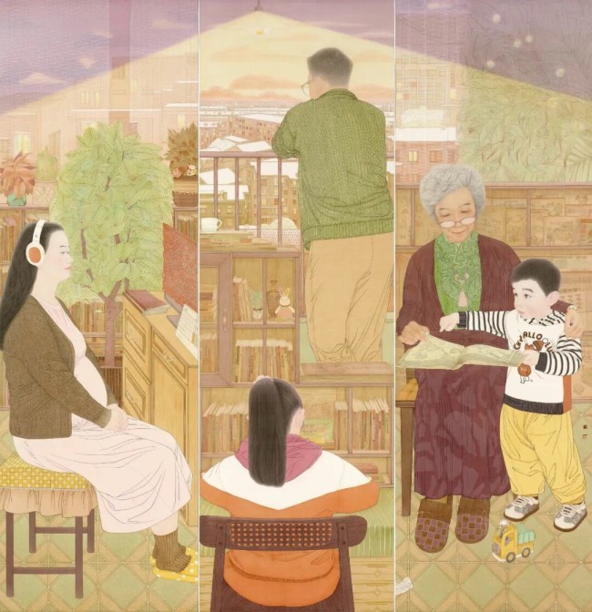 一是坚持“师造化”理念。通过深入生活,不断感知时代脉搏和生活质感,捕捉真实情感与经验,坚持在生活中升华艺术与思想,催生创作灵感,避免被技术同质化。即便是当下工笔画创作中出现的一些仅为主题而主题、弱化艺术本质、消解作品精神性的现象,如摆拍情节,一味在图式上做文章,将美术作品简化为图式说教和艺术构成等,这些均可被AI及图像处理工具所替代。然而,忠实于自身生命体验、观照人性以及对爱的深刻诠释,才是永恒的艺术魅力之所在。