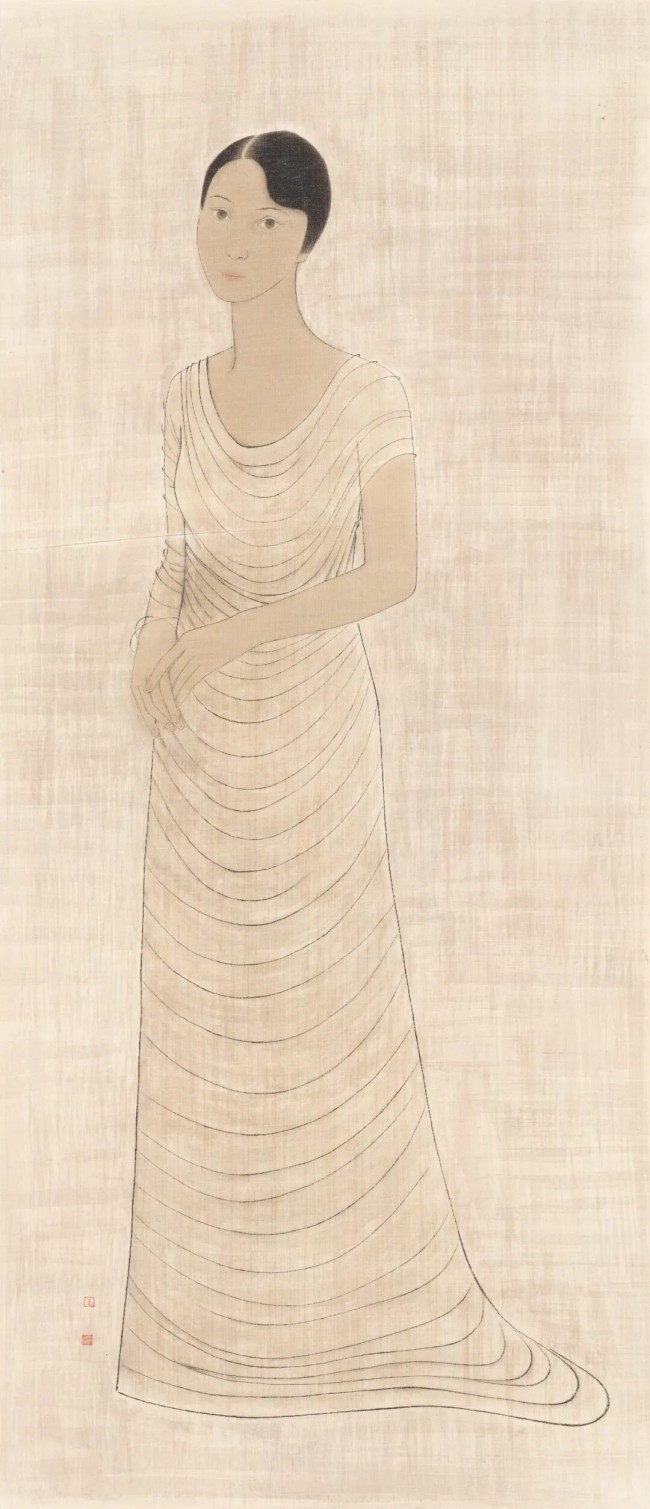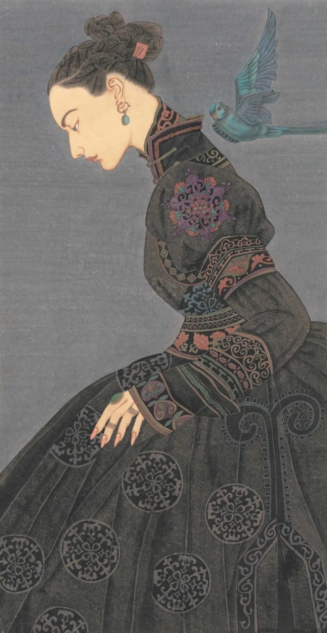 王海滨《小菲30》绢本重彩 215cm×90cm 2020年