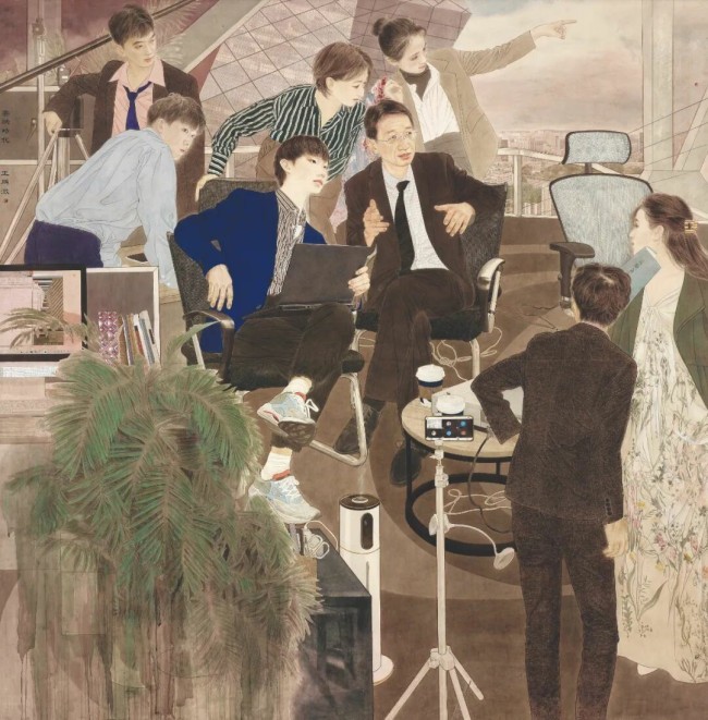 王鹏澂《云端时代》纸本设色 230cm×227cm 2024年