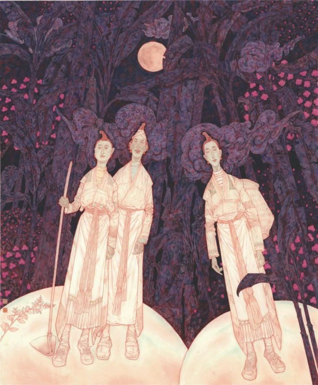 王冠军《风花雪月系列——皎皎天心月》纸本设色 70cm×45cm 2023年