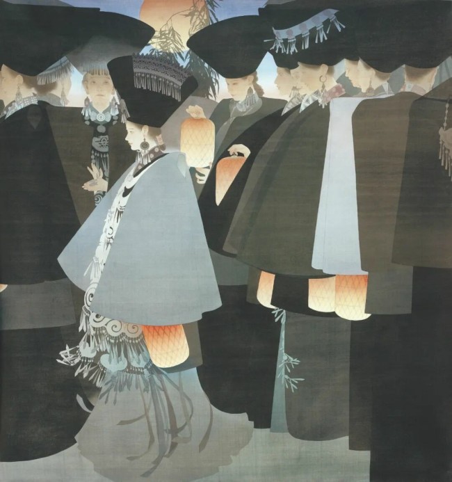 杜武杰 周丽雅《彝寨夜曲》绢本设色 177cm×164cm 2024年