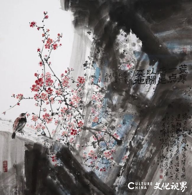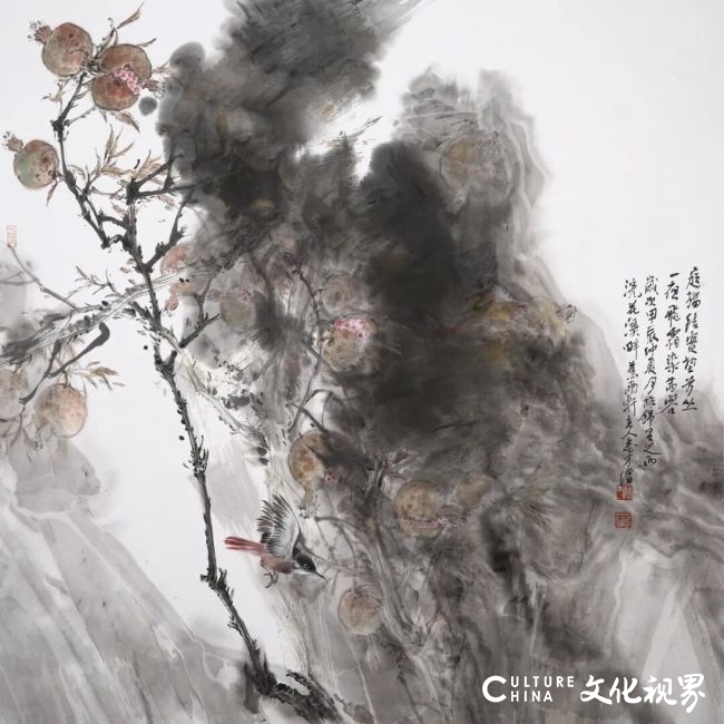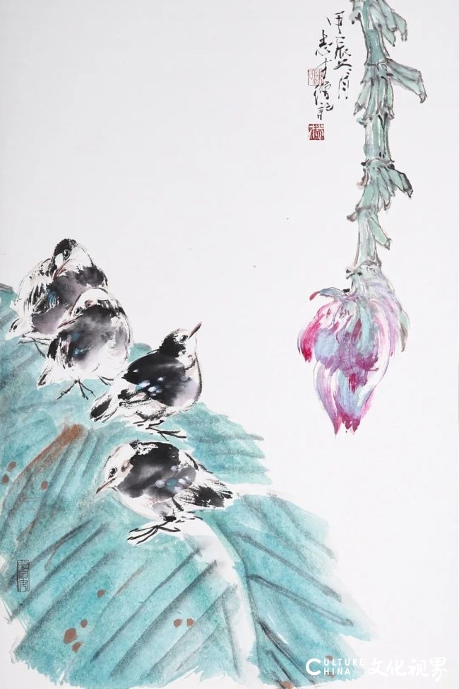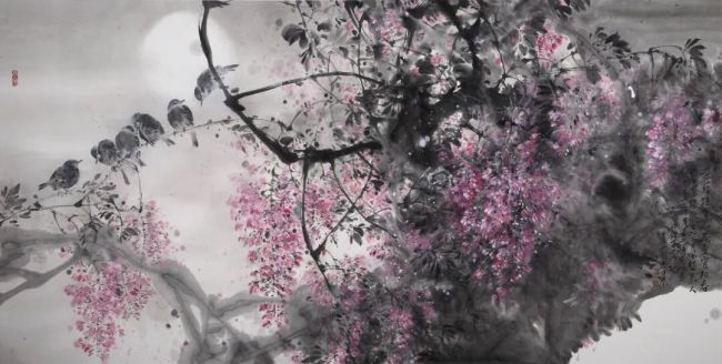 他笔下的花鸟,既有大写意的水汽淋漓、氤氲幻化,于磅礴混沌中见墨法气象;又有工笔画的精微刻画,于虚实相生处现骨法精神。一收一放,一阔一细,看似对立的笔墨语言,在他手中成就了一种独到的、充满现代感的东方意境。虚与实、工与写,不再是技法的分野,而是陈志才先生艺术中的两面,共同构成了他艺术世界的柱石,也是个体精神与材质物性交融后,显影出的独特境象。