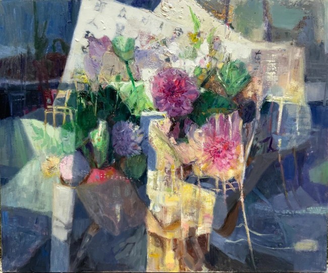 色彩是戯佳艺术语言中最动人的部分。她的色彩体系建立在细腻的情感感知与精湛的技艺掌控之上。那些看似平常的颜色在她的笔下获得了新的生命,它们相互呼应、彼此渗透,形成丰富而和谐的视觉交响。她尤其擅长在坚实的色块中保留光的流动与空气的震颤,让实在的物象沐浴在虚幻的氛围中,产生一种如梦似幻的视觉效果。这种对色彩的独特处理,使得她的画面既保持着与物象的联结,又超越了具实的束缚,进入诗意的境界。