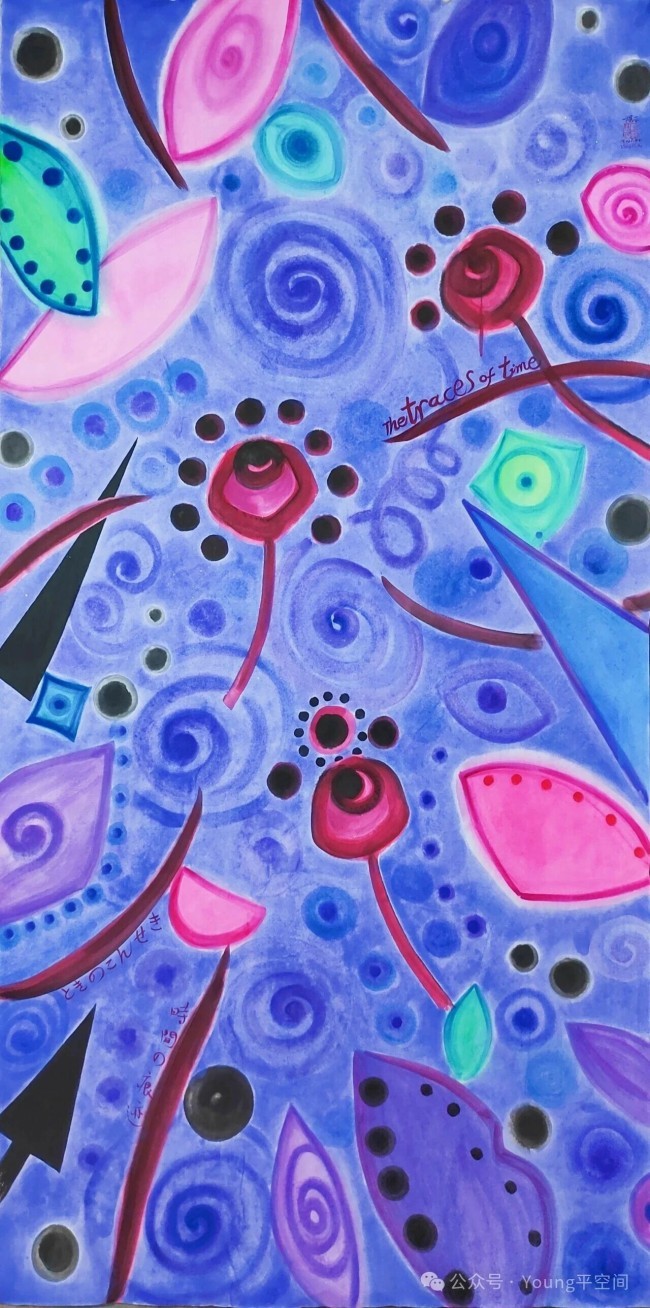 时间,无形无相,却雕刻着宇宙万物最深刻的印记。当艺术家试图捕捉这一永恒的主题,水墨——这一浸润着东方哲学与时间感的古老媒介,便成为了最贴切的言说方式。这一系列《时间的痕迹》,以花的荣枯与周期变幻为隐秘的线索,展开了一场与时间的抽象对话。