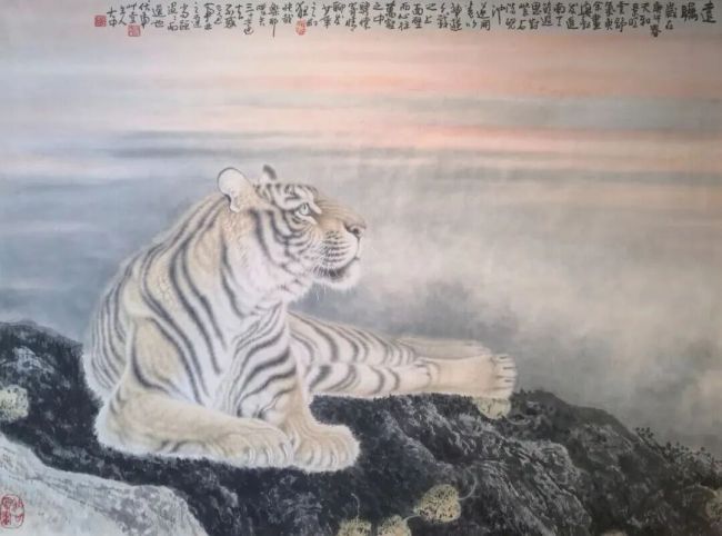 真正伟大的艺术从来不是脱离时代的孤芳自赏。冯大中的艺术具有鲜明的时代性特征。他笔下的虎,不再是传统中单纯象征权力与威严的符号,而是被赋予了更多现代人文关怀——它们有亲情,有思考,有孤独,有温情。这种对传统题材的现代诠释,反映了当代中国人的精神世界和情感结构。他的山水画,在传统意境中融入了现代构成意识;他的花鸟画,在文人雅趣中增添了生活气息。这种时代性使他的艺术既是传统的,又是现代的;既是民族的,又是世界的。