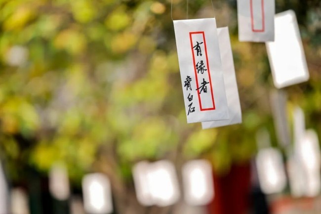 十月廿四日的北京,阳光透过胡同深处的银杏叶,洒进齐白石旧居纪念馆的小院。“白石来信”挂满了海棠树的树梢,在微风中轻轻摇曳。人们在树影斑驳间取阅信笺,聆听一场跨越百年的艺术邀约。院落一角,有人为齐白石画中人塑像,有人装扮成画家笔下的神仙或凡人。小院中茶香氤氲、歌声袅袅。在这样的氛围中,“齐白石在山东”文旅融合创新项目正式启幕。