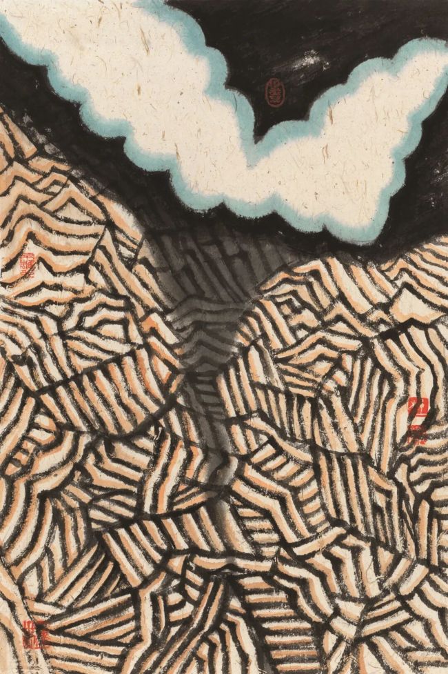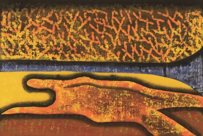 日本版画家野田哲也先生也对我产生很大影响。有趣的是,我在日本求学期间并未见过他,直到某天他来校参观时,经过我的工作坊,隔着玻璃看到我的一幅裱好的版画背面,说了一句“这画挺有意思”。事后同学转告了我这句话,我不禁琢磨:为何他只看背面就觉得有意思?后来我恍然大悟,是那种斑驳自然的肌理效果打动了他。受此启发,我经过反复实验,逐步确立了自己的版画语言,创作热情自此一发不可收拾。2023年,在深圳观澜国际版画基地,我终于见到野田哲也先生,并当面聊起这段奇妙的缘分,两人大笑不已。在日本的点点滴滴,既精彩又有趣,成为我人生中难得的幸福时光和宝贵财富,至今仍在滋养着我回国后的工作、生活与艺术创作。