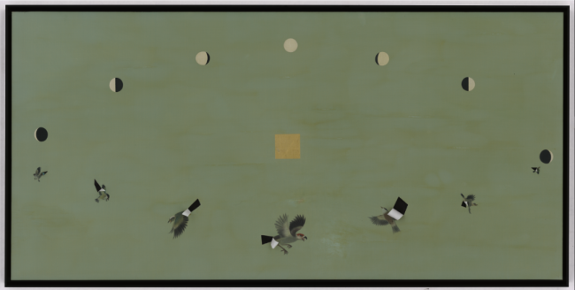 被中国美术馆收藏的《五星联珠》这件作品的艺术语言非常综合,媒材也非常复杂。“2016年1月,夜空中出现五颗行星和满月连成一线的罕见天象。这期间我也持续多日观察并拍摄了此天象,文字记录了天象发生的全过程。因为知道‘五星联珠’的天象在古代天文学中意义重要,就想以此为主题创作一件作品。这件作品被中国美术馆收藏,对我来说是备受鼓舞的。虽然这件作品因为在形式创新上,得到的评价褒贬不一。”