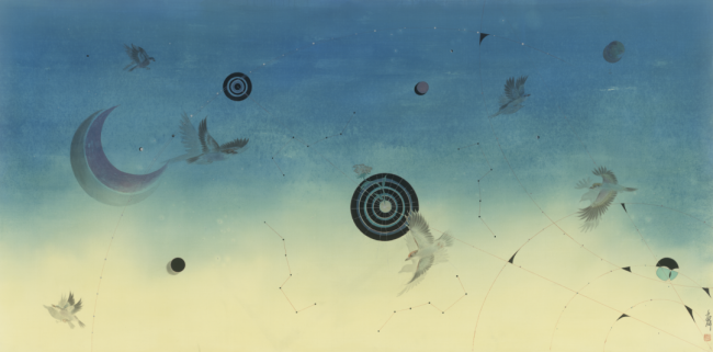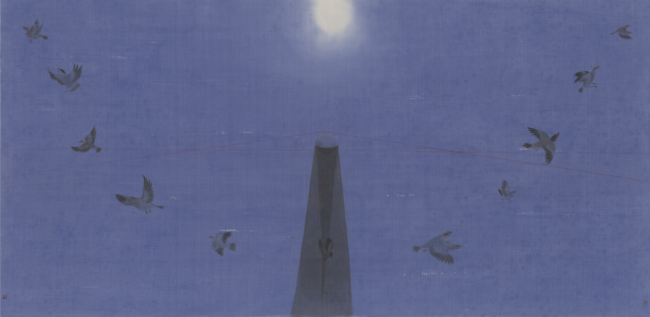 抬头的一片天,是男儿的一片天。曾经在漫天的星光下,仰头望天的少年,在多年来辗转多地的人生经历中,已经知道天有多高,也知道海有多远之后,更加坚定地描绘那点点星光。将天文爱好引入到绘画创作中,以星空为母题尝试新的艺术形式与精神内涵,不仅拓宽了工笔画的平面边界和材料语言,而且为当代工笔画的发展提供了有参考价值的探索方向。