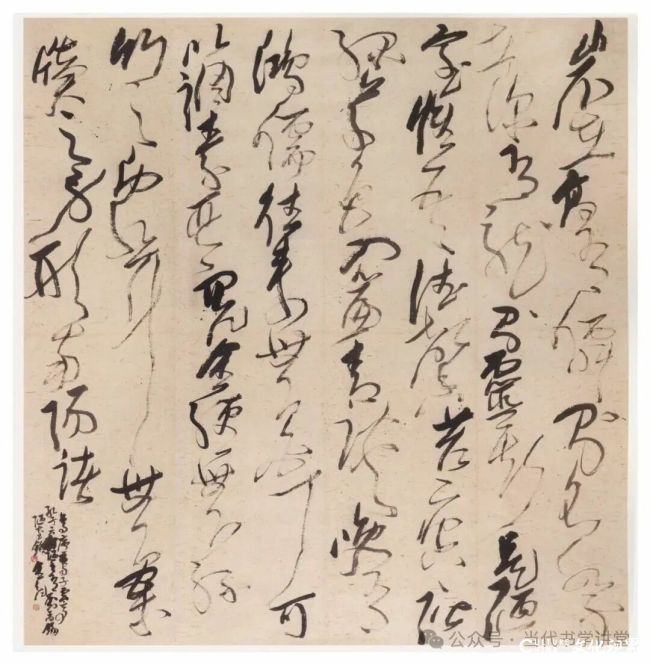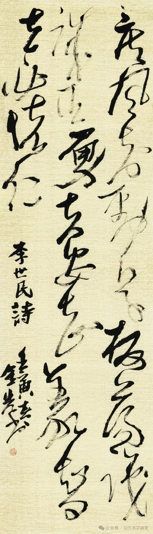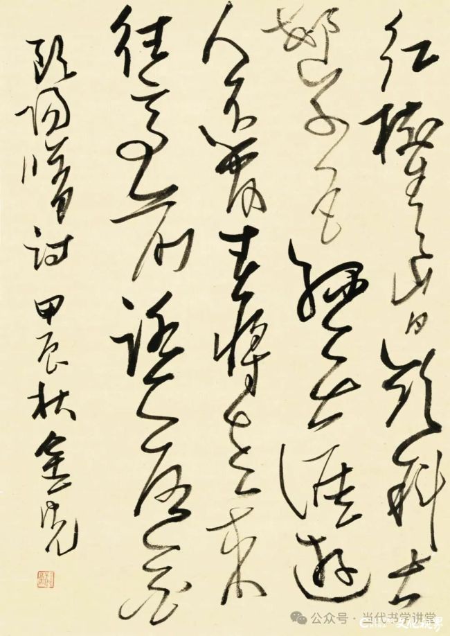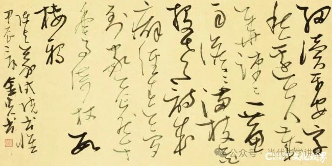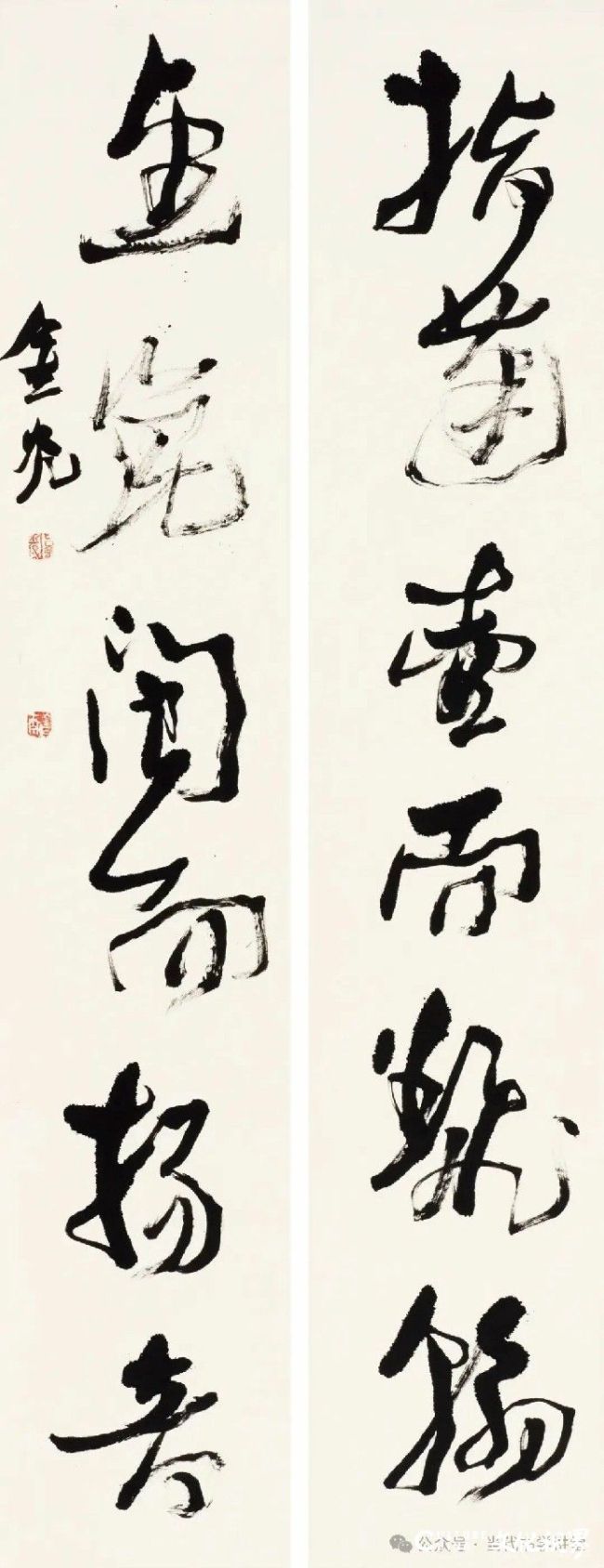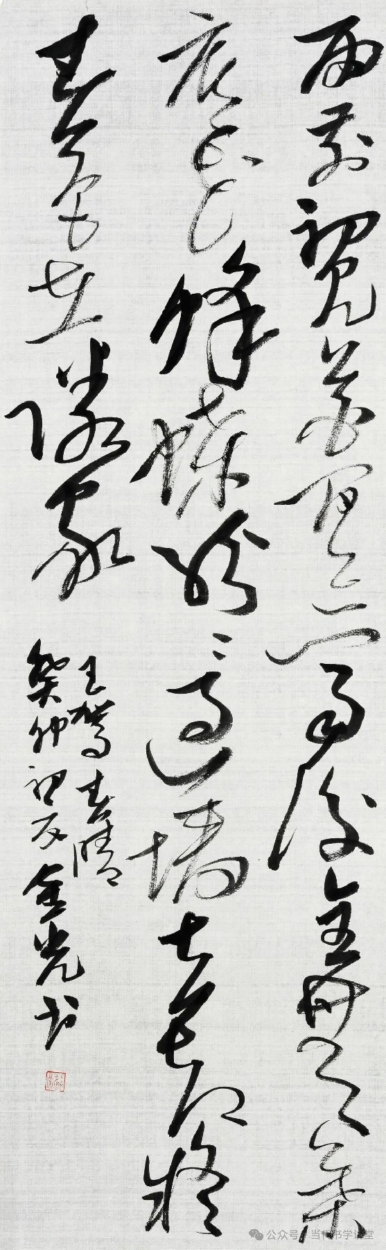这种“金光图式”,是他在章法、结字、墨法以及意境营造上的全新创造,更是他对中国传统文化深刻觉醒与顿悟的体现。他巧妙融入西方格式塔心理学“部分之和大于整体”的美学理念,同时赋予其东方的哲学内涵,形成了克莱夫・贝尔所说的“有意味的形式”。他的结字奇崛多变,收放自如;墨法枯润相生,层次丰富;章法大开大合,虚实相生。他凭直觉运笔,写出的线条既果断又灵动,既连绵又劲挺,既刚健又温润,共同营造出深邃悠远的意境。这一切共同构成了脱胎换骨的“金光图式”,已然深深烙印在每一位观者的心中。