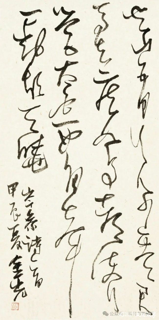 在当代书坛,他的崛起堪称一部从乡村走向殿堂的传奇。他个子不高,一双深邃的眼睛里藏着对书法线条的极致敏感与创作直觉。他操着一口带着乡音的普通话,听来别有韵味。恰如他的书法,有一种“欲说无言”的佳境妙处。这种境界,正如司空图在《二十四诗品》中所言:“不着一字,尽得风流”。